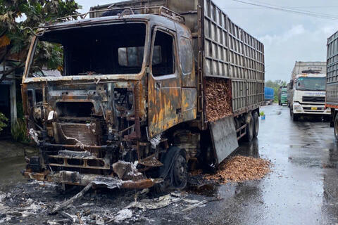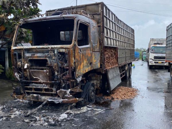 Xe ô tô tải bốc cháy trong đêm, thiệt hại khoảng 300 triệu đồng